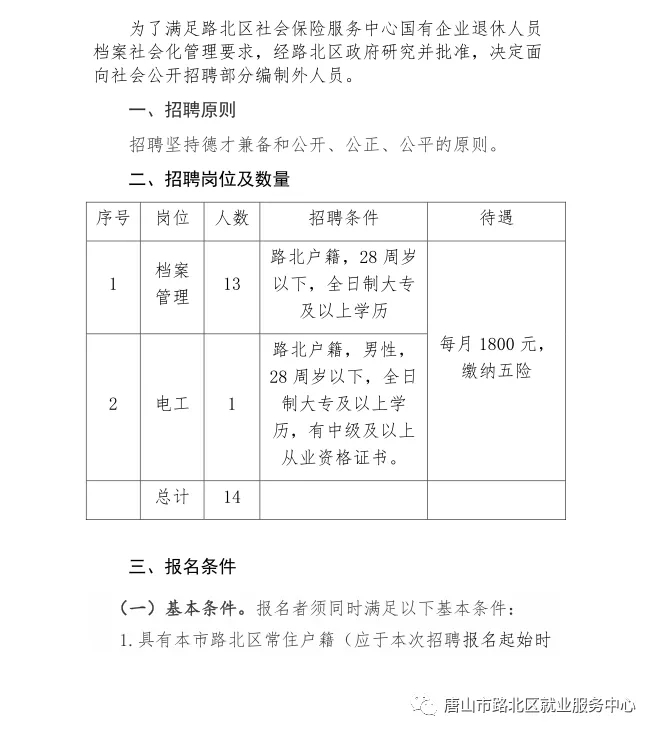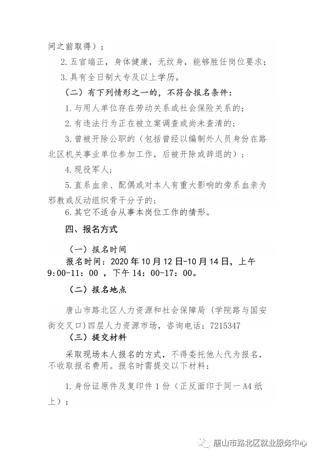 / 2020年唐山市路北区面向社会公开招聘部分编制外人员公告