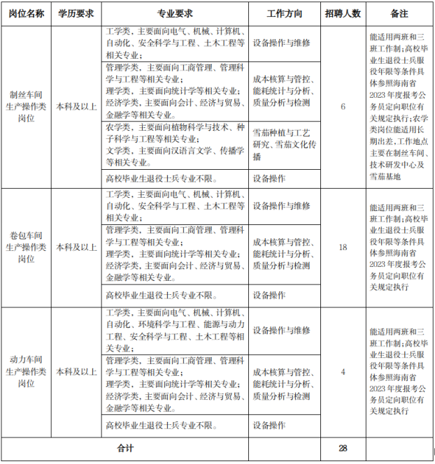 2023年海南红塔卷烟有限责任公司新员工招聘公告