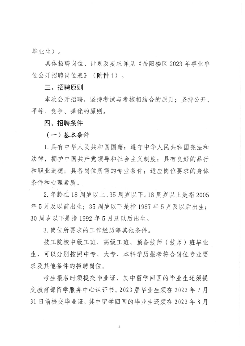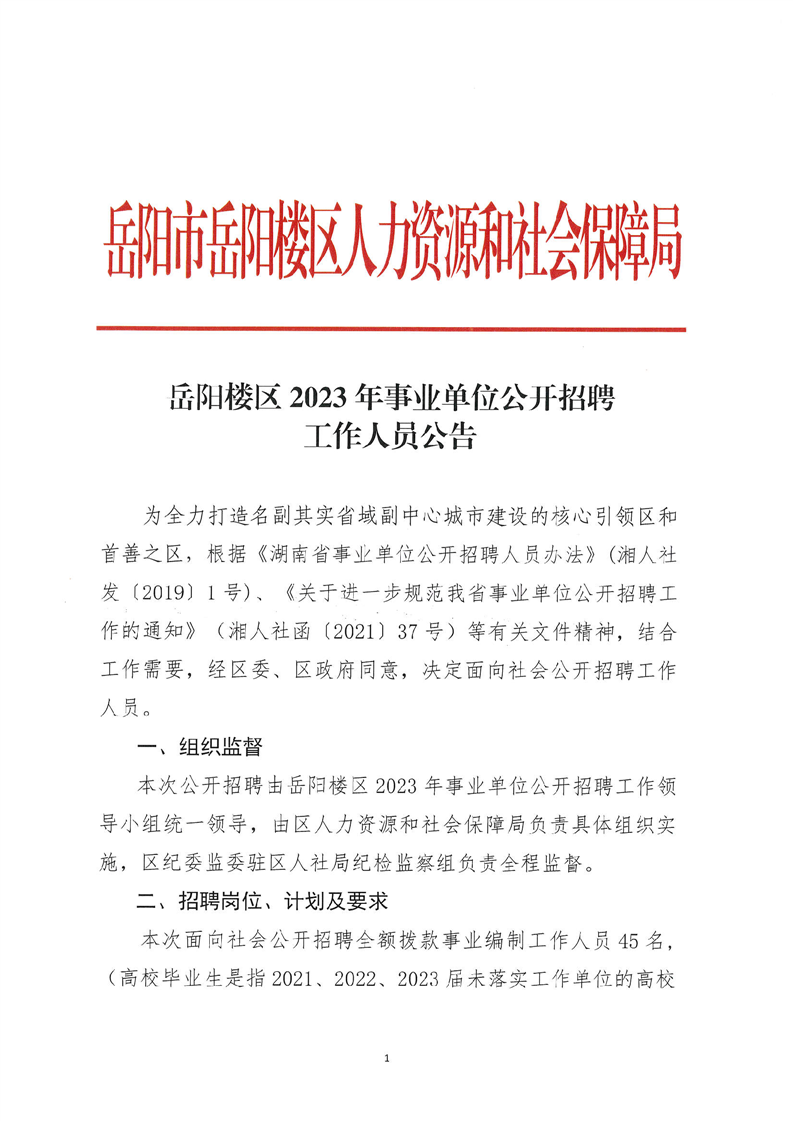 2023年岳阳市岳阳楼区事业单位公开招聘工作人员公告