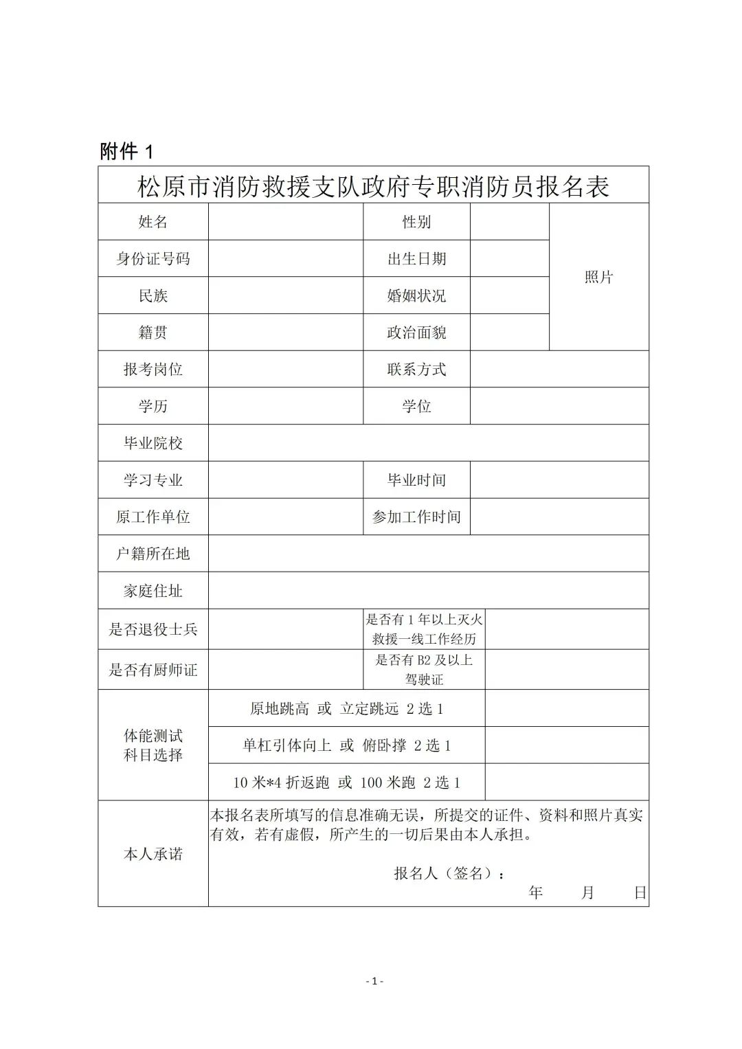 2、报名方式:采取网上报名的方式,将报名表材料压缩打包(命名格式为“报名专职消防员+姓名”),电子邮件至sysxfzd119@163.com邮箱,由松原市消防救援支队政府专职消防员招录办公室受理。咨询电话:19904384119;咨询时间:8:00-17:00。