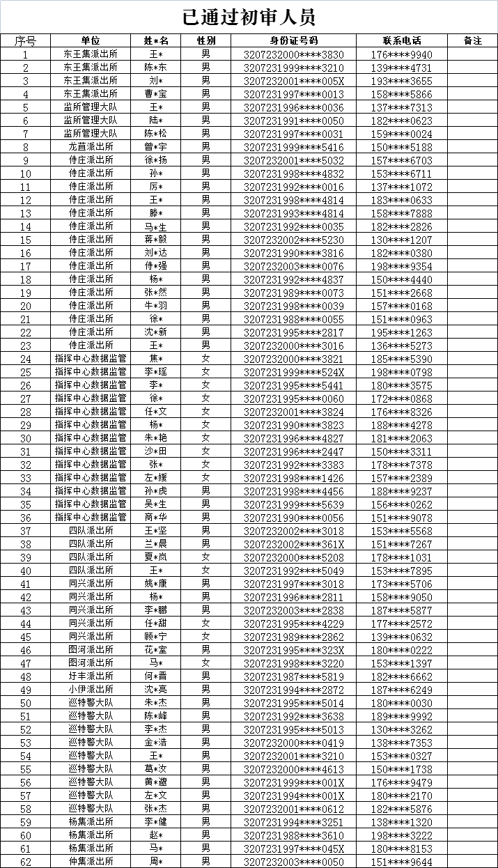 已参加灌云县公安局2022年2月份招录(因疫情影响,该次招录未能正常开展)报名的人员此次无需再次报名,通过初审人员名单见附件。