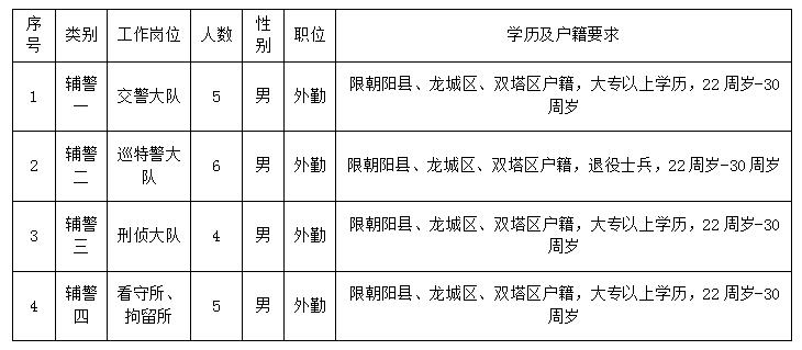 计划招考勤务辅警20名仅限男性(因全部为外勤辅助人员,须长期执勤,不适合女性),主要从事警务辅助工作,职位信息如下: