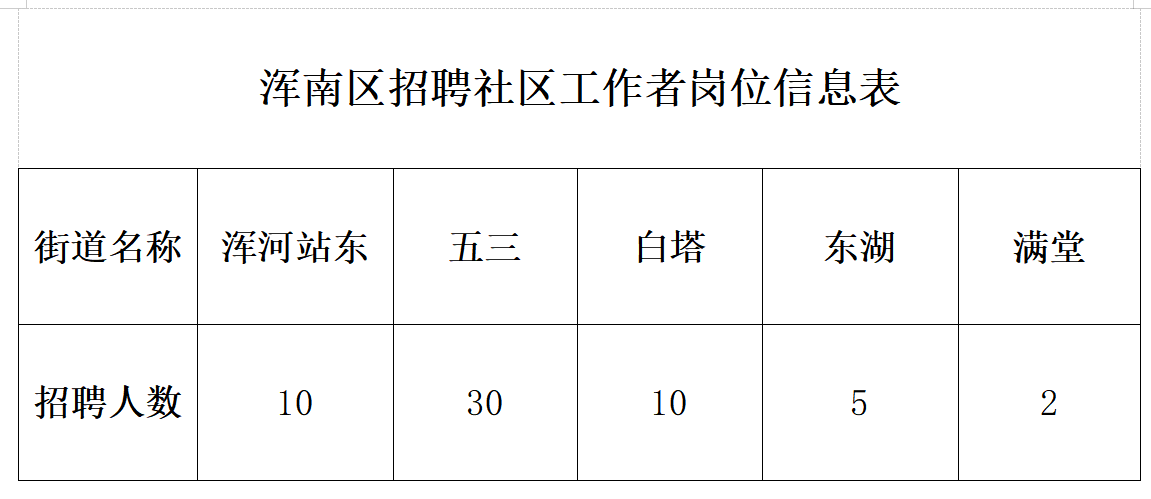 2023-04-10 09:19:45阅读()浑南区人民政府根据《沈阳市民政局沈阳市财政局关于做好2023年社区工作者招录工作的通知》精神,结合浑南区实际工作需求,经区政府决定,现面向社会公开招聘浑南区社区工作者57人。具体要求如下: