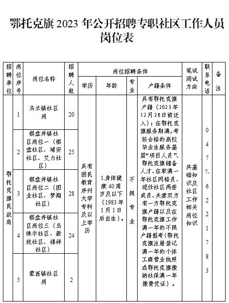 2023年鄂尔多斯鄂托克旗公开招聘专职社区工作人员简章