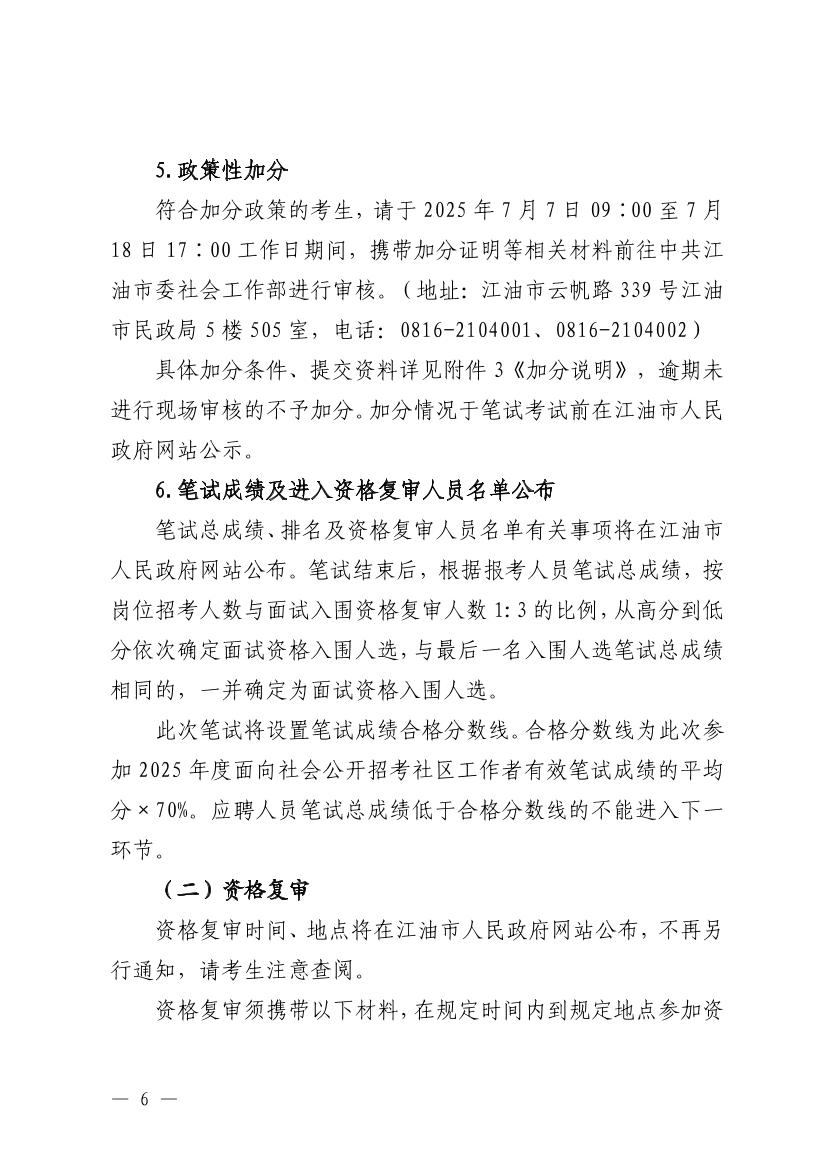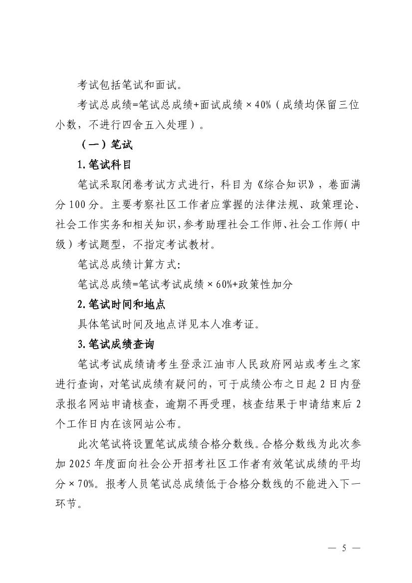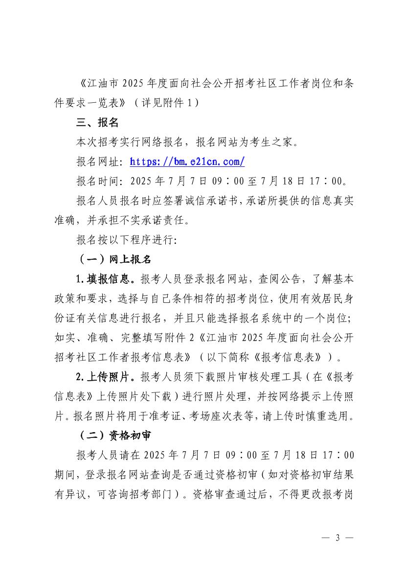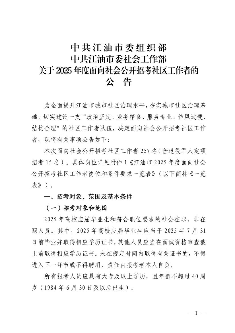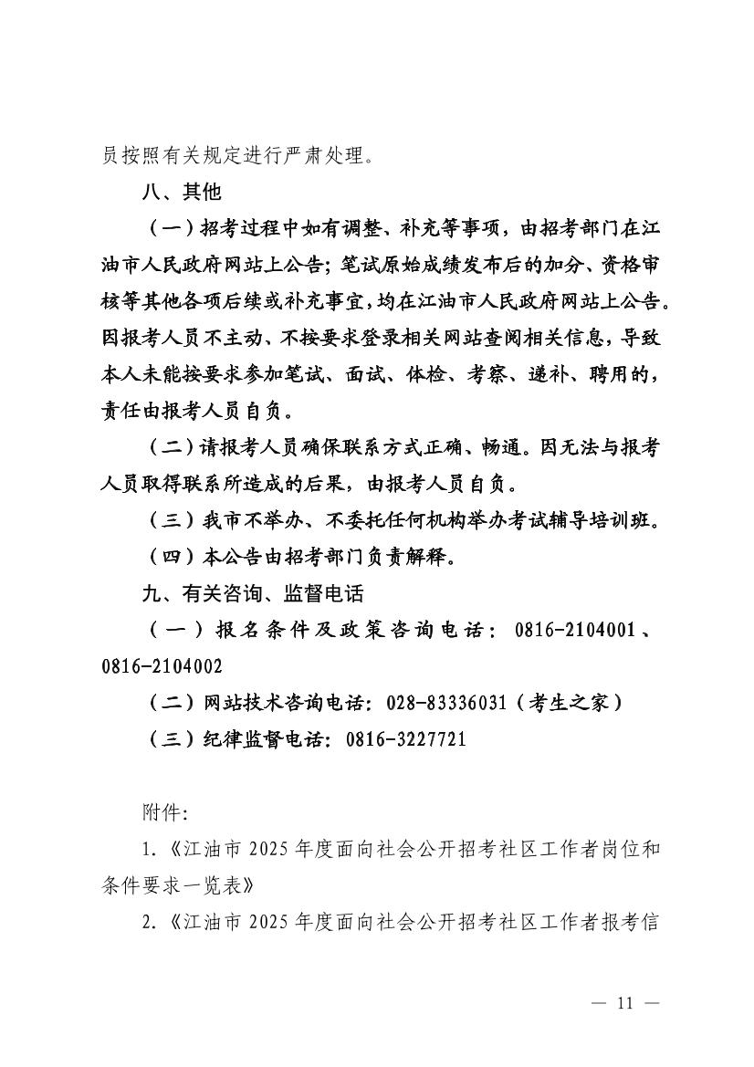 2025年绵阳江油市面向社会公开招考社区工作者公告
