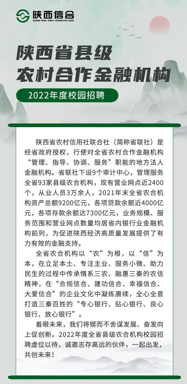 / 2022年陕西省县级农村合作金融机构校园招聘公告