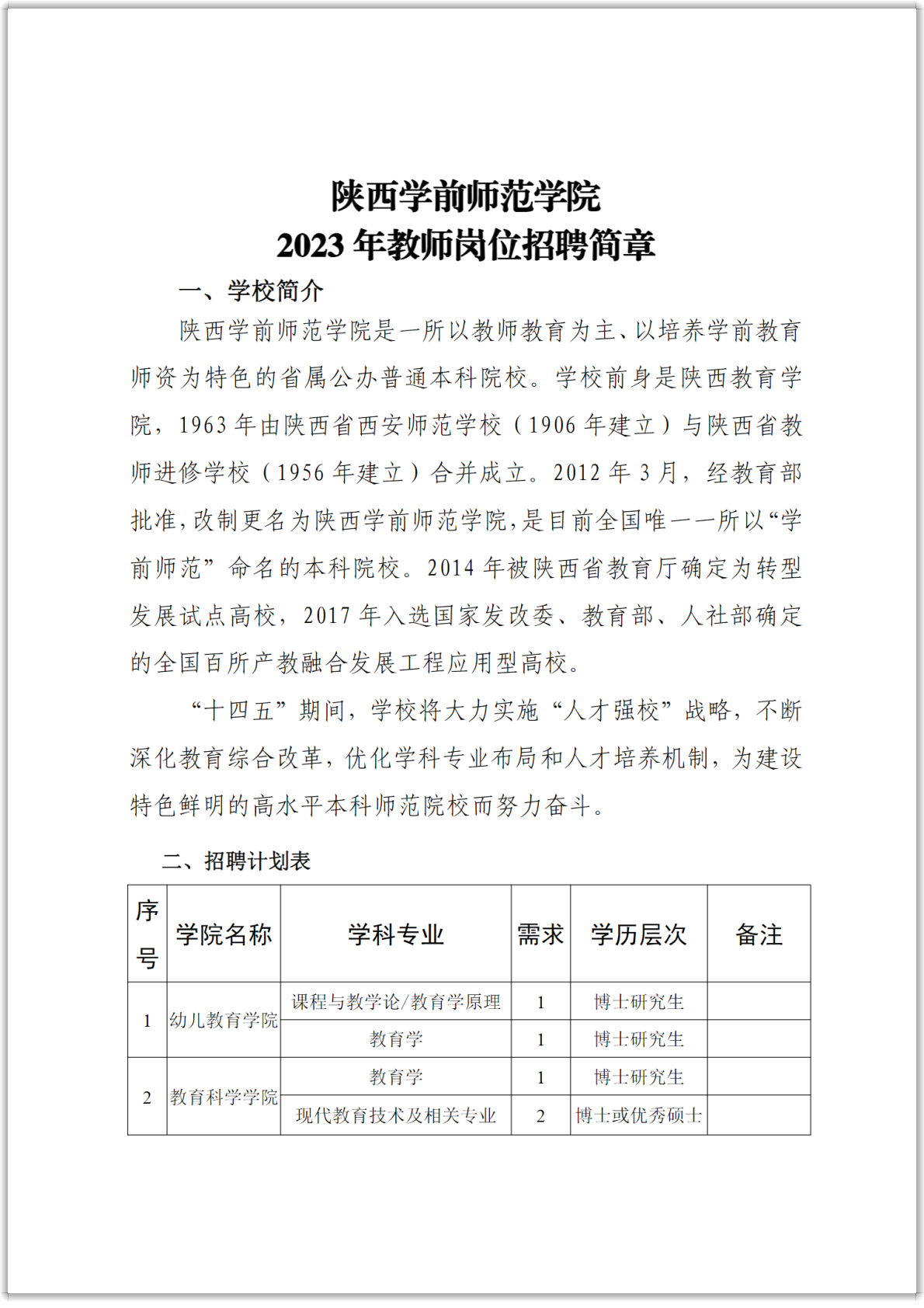 2023年陕西学前师范学院教师岗位招聘简章