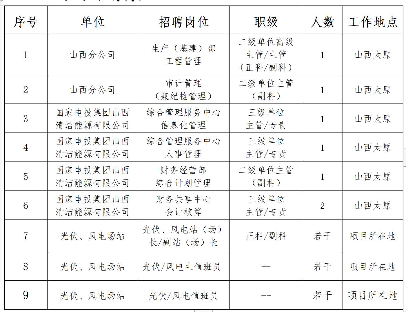 2022年国家电投山西分公司招聘公告