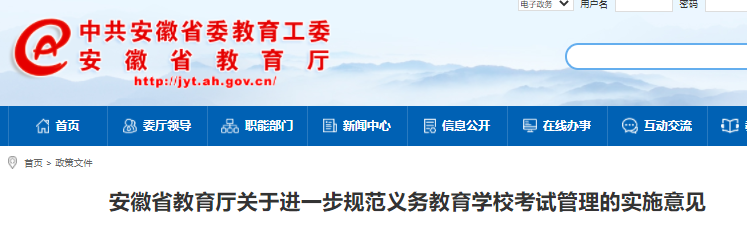 2021-12-02 10:03:00阅读()安徽网据安徽省教育厅消息,作为安徽版“双减”的配套政策,近日,安徽省教育厅官网发布《安徽省教育厅关于进一步规范义务教育学校考试管理的实施意见》,明确“大幅压减考试次数和科目”、“小学阶段不得进行期中考试”、“重点治理考试次数偏多、难度较大、质量不高、结果使用不当等突出问题。”