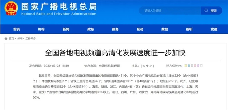 2020-03-02 16:22:41阅读()国家广播电视总局根据国家广播电视总局的消息,截至目前,全国各级播出机构经批准高清播出的电视频道已达431个。