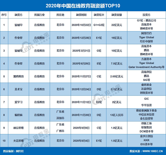 就在周枫喊出这句口号之前,资本对于在线教育的投入已经堪称“疯狂”。2020年3月和8月,猿辅导分别宣布获得10亿美元和12亿美元的融资;2020年6月,作业帮宣布获得7.5亿美元E轮融资;2020年4月和8月,火花思维分别宣布获得3000万美元和1.5亿美元融资;2020年9月,豌豆思维宣布获得2亿美元C轮融资。