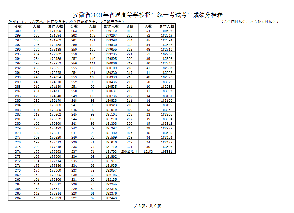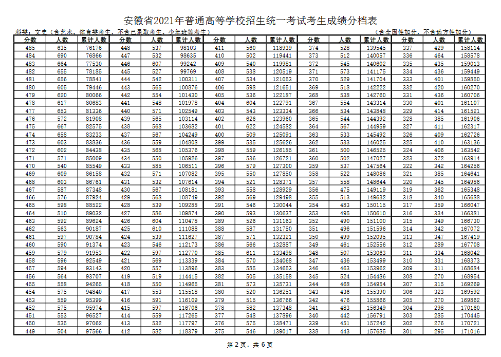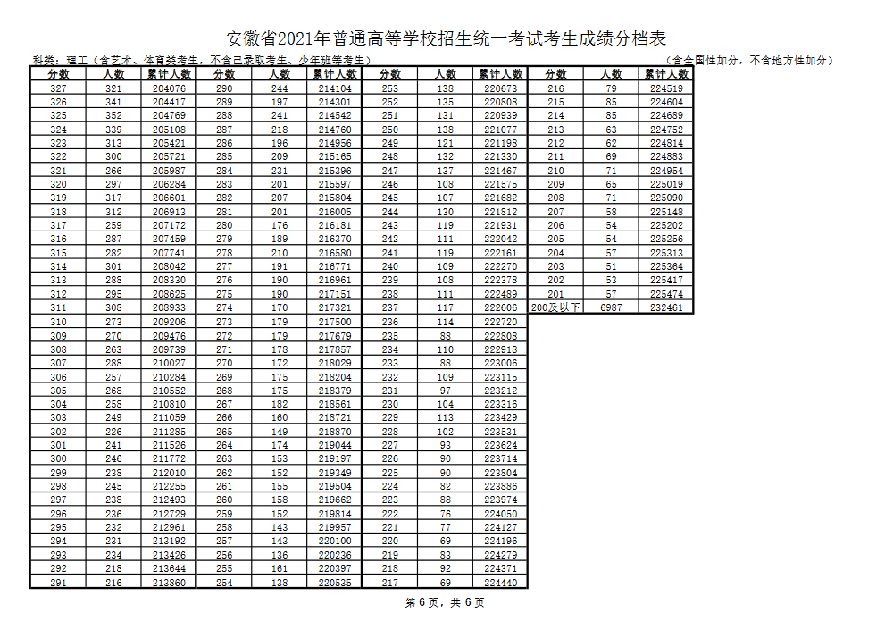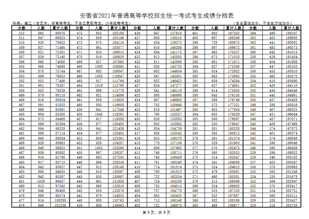 2021年安徽省高考成绩分档表公布