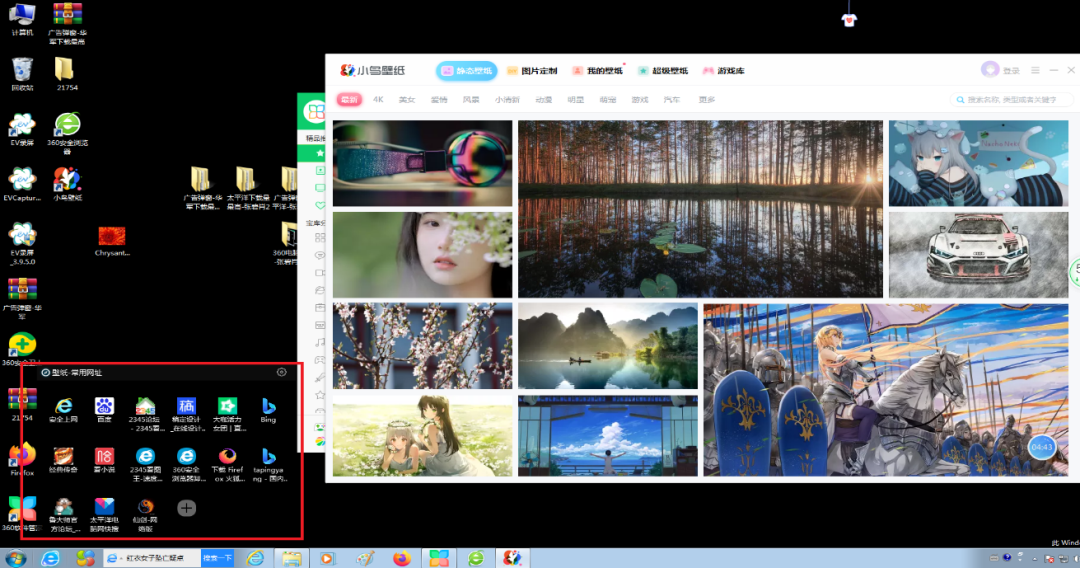 △图为小鸟壁纸安装过程中强制安装“IE”,“IE”点开后出现“壁纸常用网址”弹窗