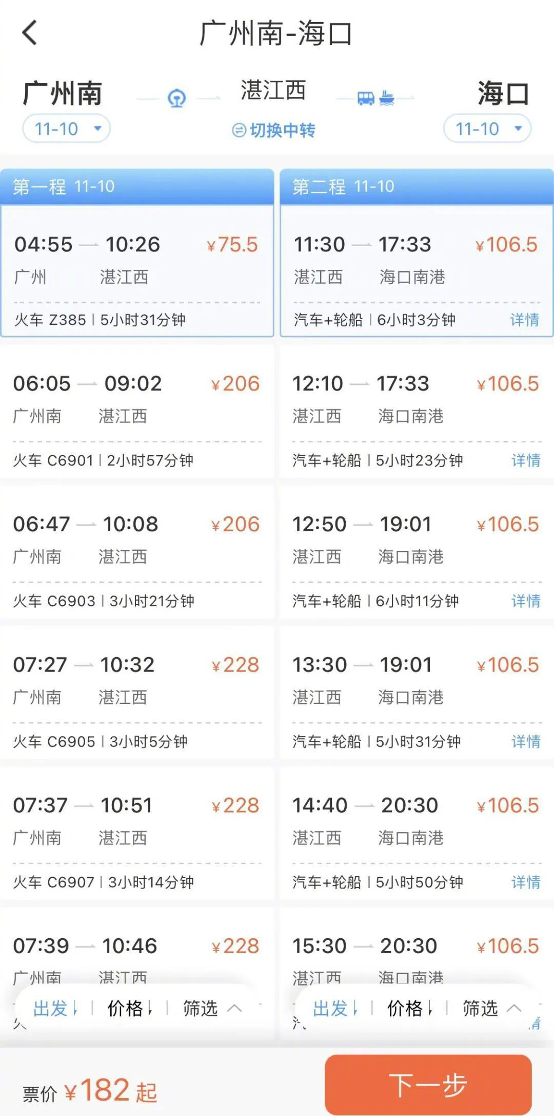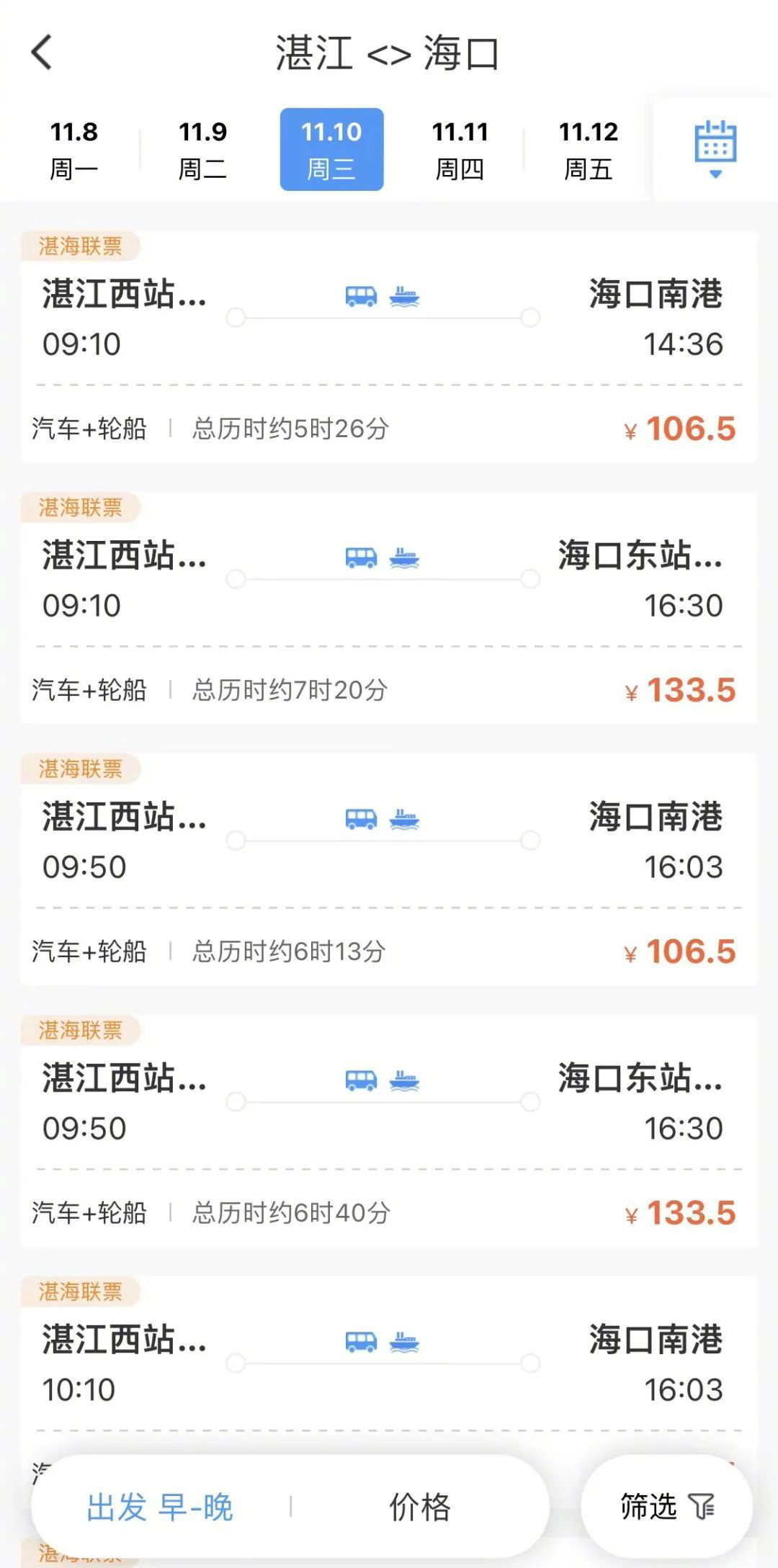 从湛江西站前往海南的旅客,可选择购买“公水联程”产品。