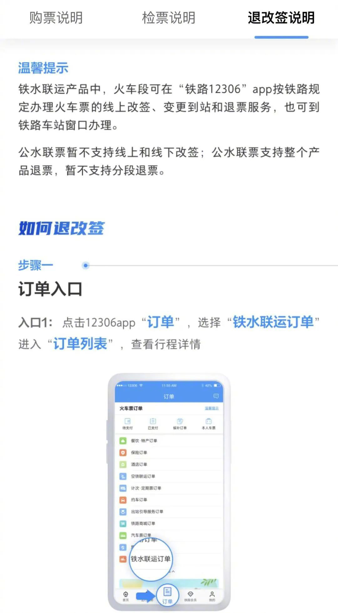 购买相关客票的旅客,可凭身份证或乘车二维码乘坐火车、汽车和轮渡,订单信息可在“铁水联运”界面右下角查询。