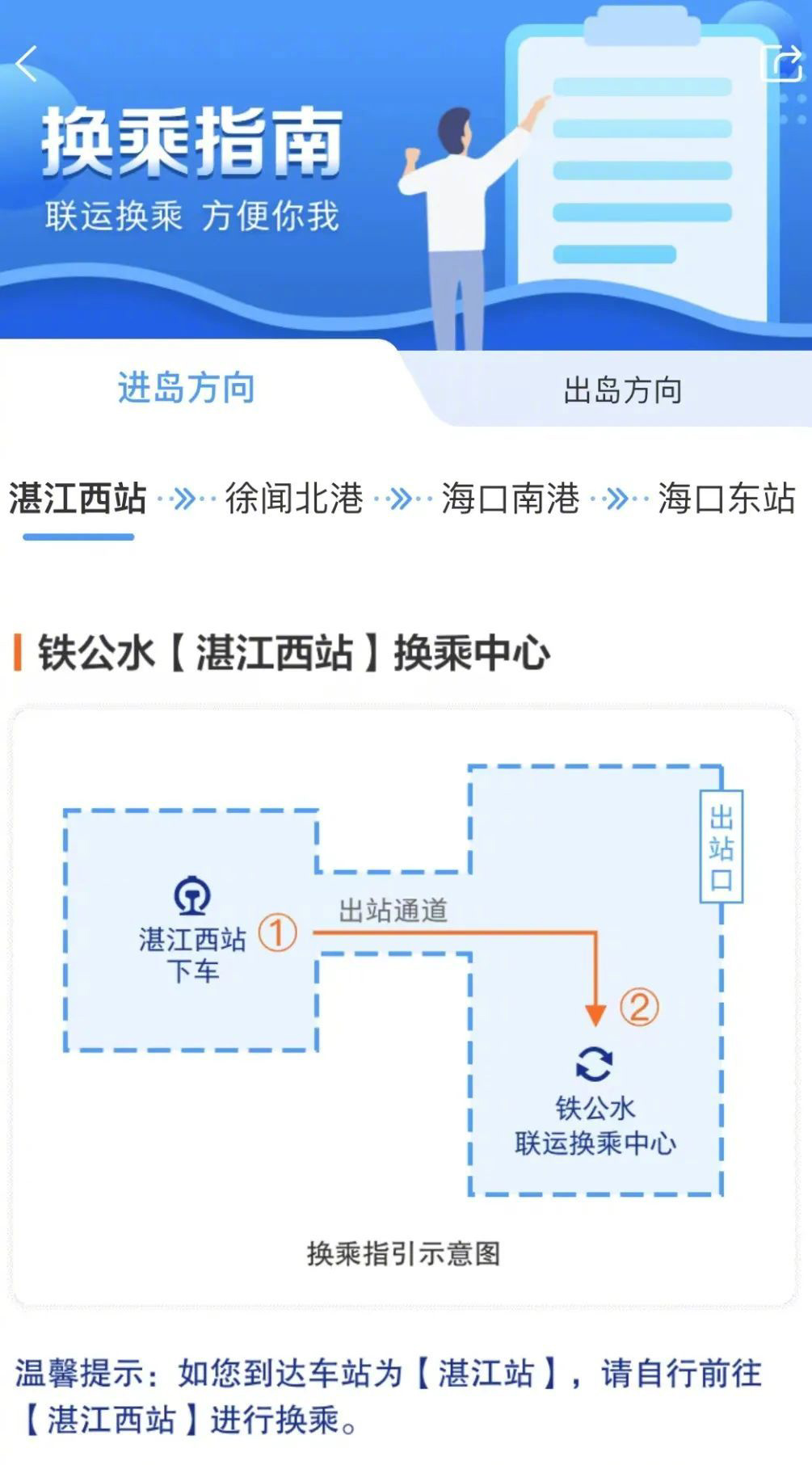 怕迷路的小伙伴不用慌,湛江西站、徐闻北港、南港码头和海口东站等地均设有换乘中心,铁路工作人员会为您提供咨询及引导服务。