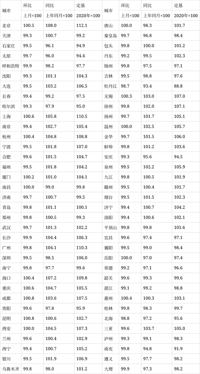 二线城市新建商品住宅销售价格环比由上月下降0.3%转为上涨0.1%;二手住宅环比下降0.2%,降幅比上月收窄0.1个百分点。三线城市新建商品住宅和二手住宅销售价格环比分别下降0.2%和0.4%,降幅比上月均收窄0.1个百分点。