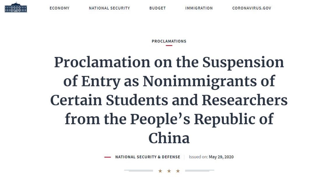 最后值得一提的是,在今年5月29日,美国总统特朗普曾签发了一则封杀部分中国留学生和学者的总统令,禁止任何与在中国从事“军民融合”项目的院校机构有关联的学生和学者,来美国进行本科以上的学习和学术研究。