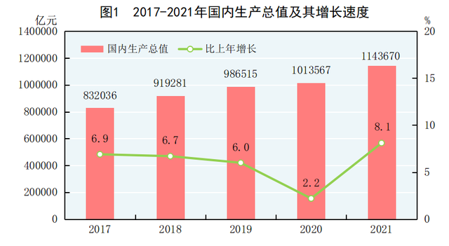 国家统计局网站2月28日发布2021年国民经济和社会发展统计公报。初步核算,全年国内生产总值1143670亿元,比上年增长8 1%,两年平均增长5 1% ...