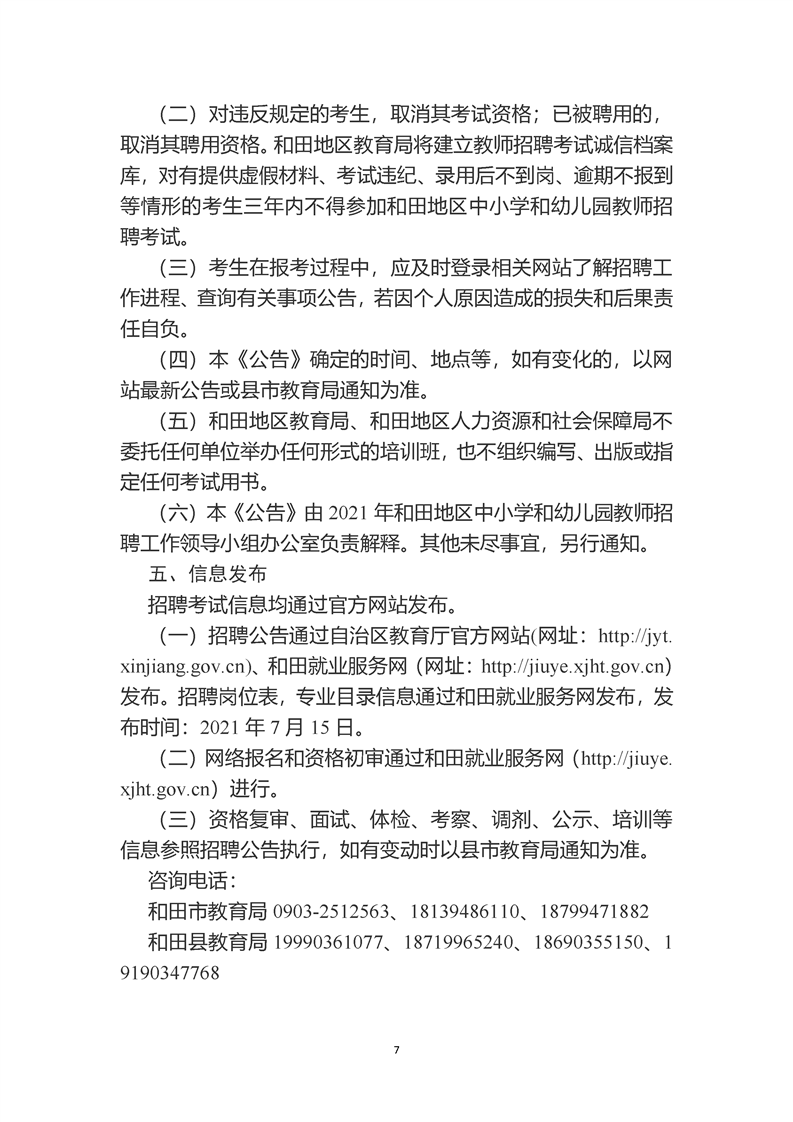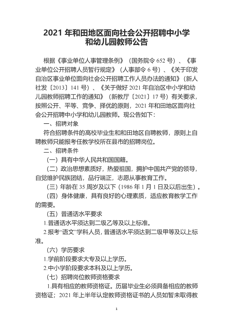 / 2021年和田地区面向社会公开招聘中小学和幼儿园教师公告