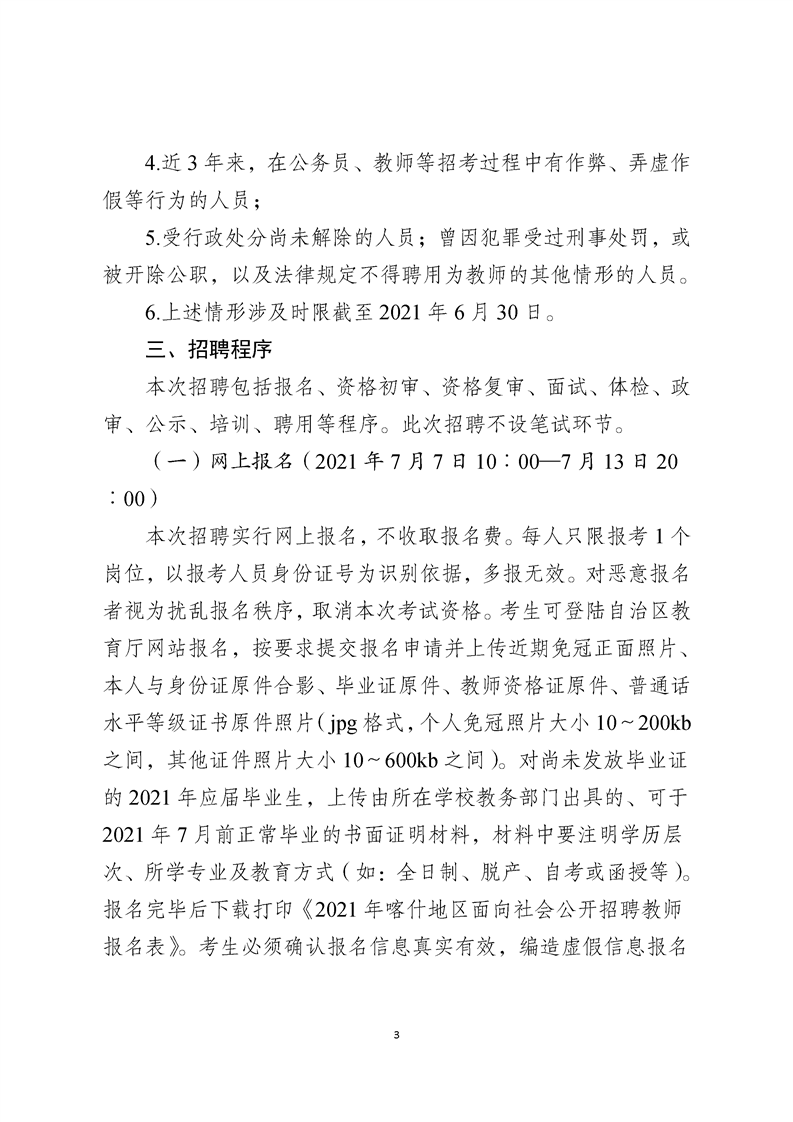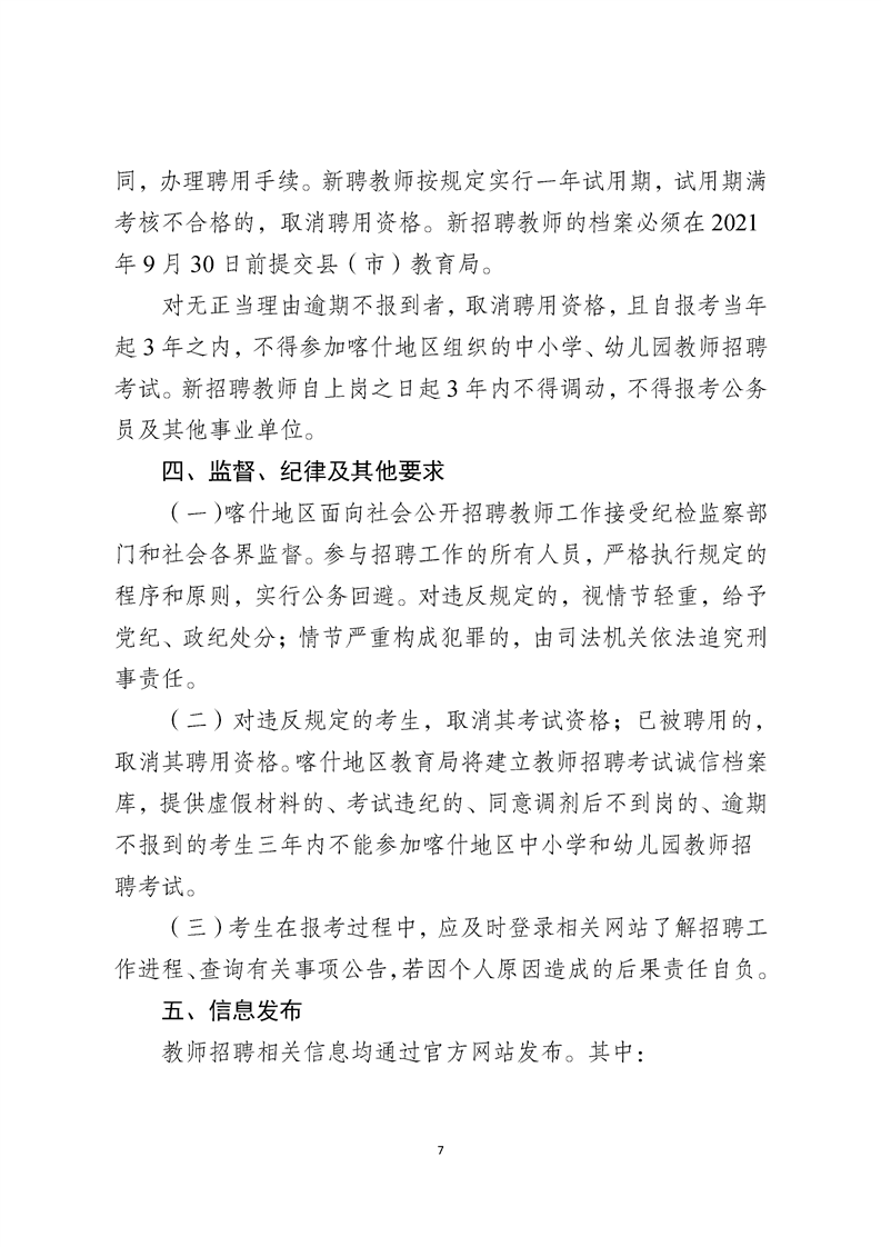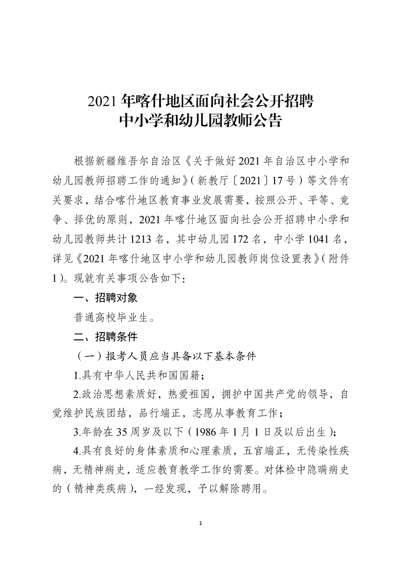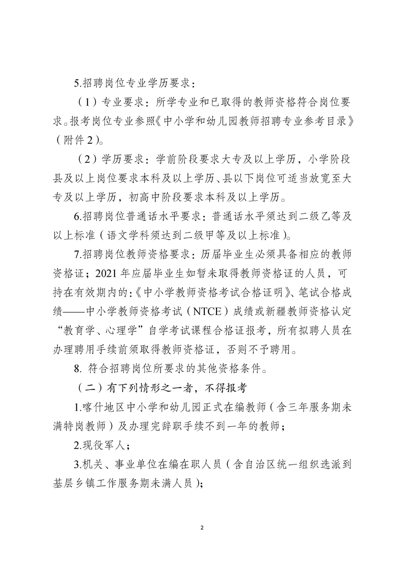 2021年喀什地区面向社会公开招聘中小学和幼儿园教师公告