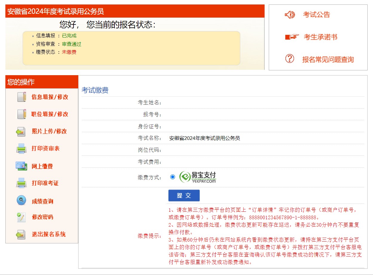 报考者应主动及时关注省公务员主管部门和各市公务员主管部门公告指定的网站。尤其是进入资格复审、体能测评、心理素质测评、面试、体检等关键环节的报考者,要主动及时关注相关网站公告的信息,认真阅读有关公告内容,避免错失资格。