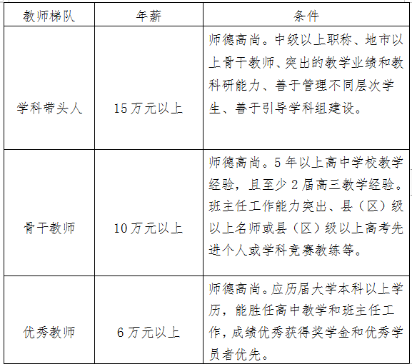 各科优秀教师、年薪6万-10万元。