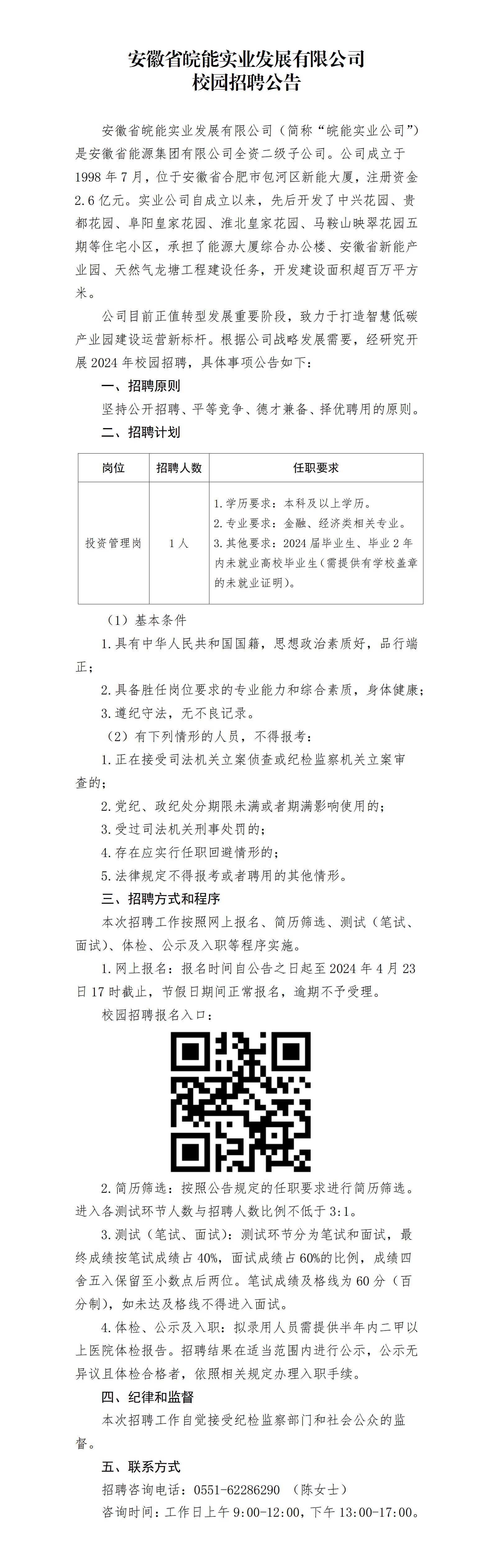 2024年安徽皖能实业发展有限公司校园招聘公告