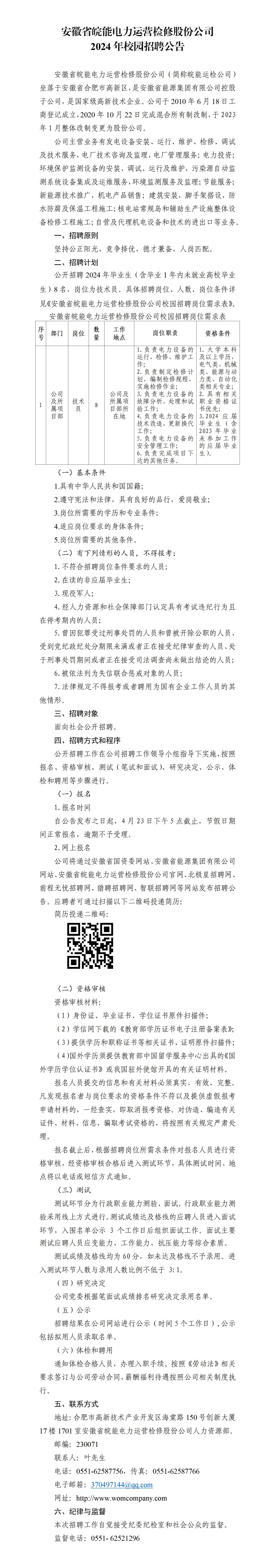 2024年安徽省皖能电力运营检修股份公司校园招聘公告