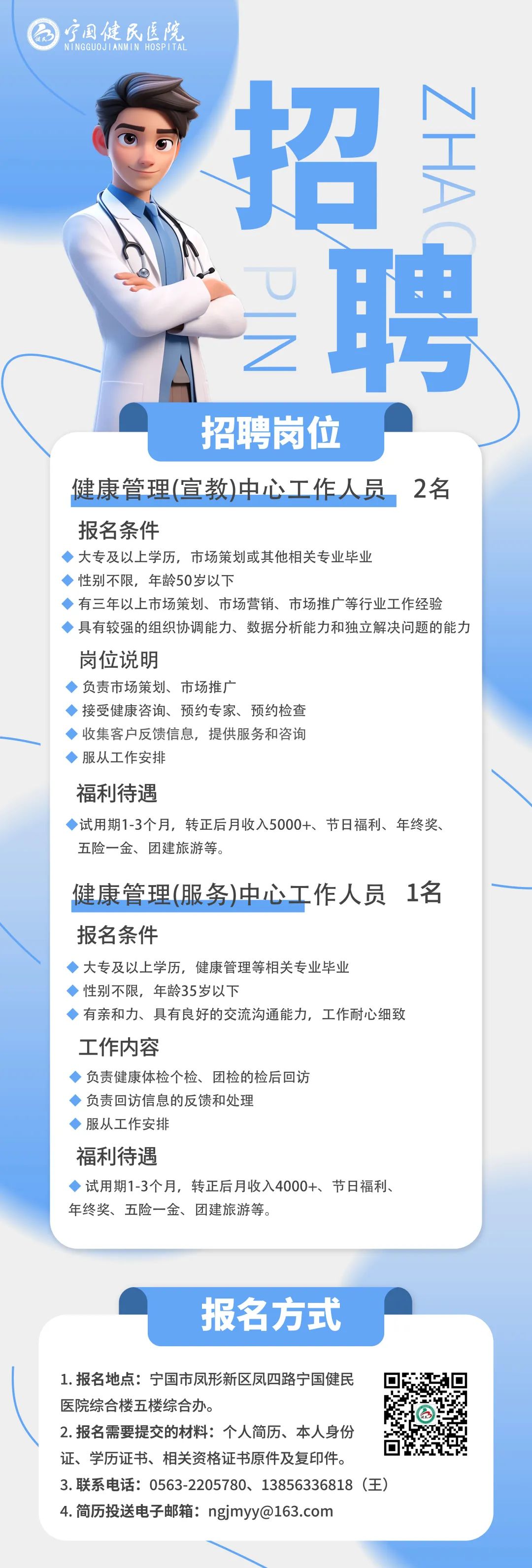 2024-04-22 10:53:18阅读()宁国健民医院招聘岗位
