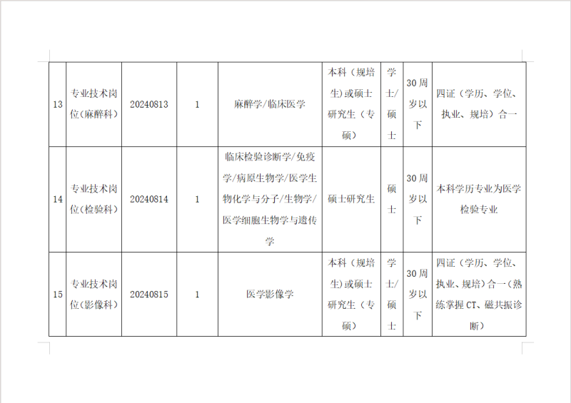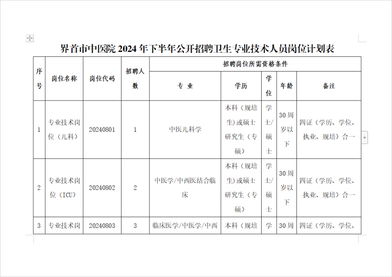 2024年下半年界首市中医院公开招聘卫生专业技术人员30名(具体岗位见附件)。