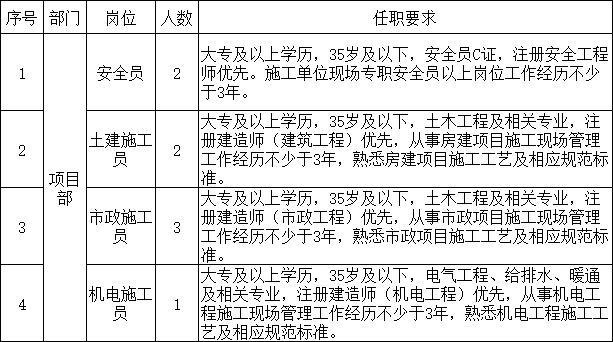 蚌埠城投建工有限公司是蚌埠市城市投资控股集团有限公司全资子公司,成立于2022年7月,注册资本5000万元。具有建筑工程施工总承包、市政公用工程施工总承包双二级资质,主营业务包括建设工程施工、园林绿化工程施工、电气安装服务、施工专业作业、建筑劳务分包、市政设施管理、建筑材料经营、销售等。结合实际工作需要,经研究决定,招聘劳务派遣8人。