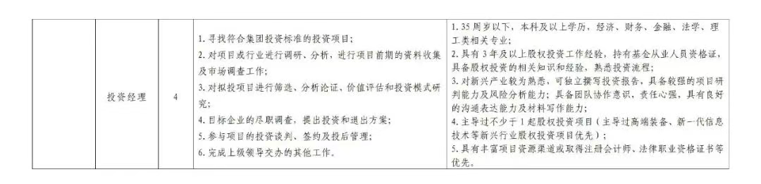 本次共招聘6人,其中投资主管2人,投资经理4人。具体岗位职责和任职要求详见附件1《合肥庐阳科技创新集团有限公司所属子公司招聘工作人员岗位表》。岗位表中的“35周岁以下”为“1990年4月2日以后出生”,其它年龄以此类推。工作经历要求,截止时间为2025年4月2日。因工作单位变化而中断时间的,其在不同单位工作的时间可以累计计算,在读期间参加勤工俭学、实习等不视为工作经历。