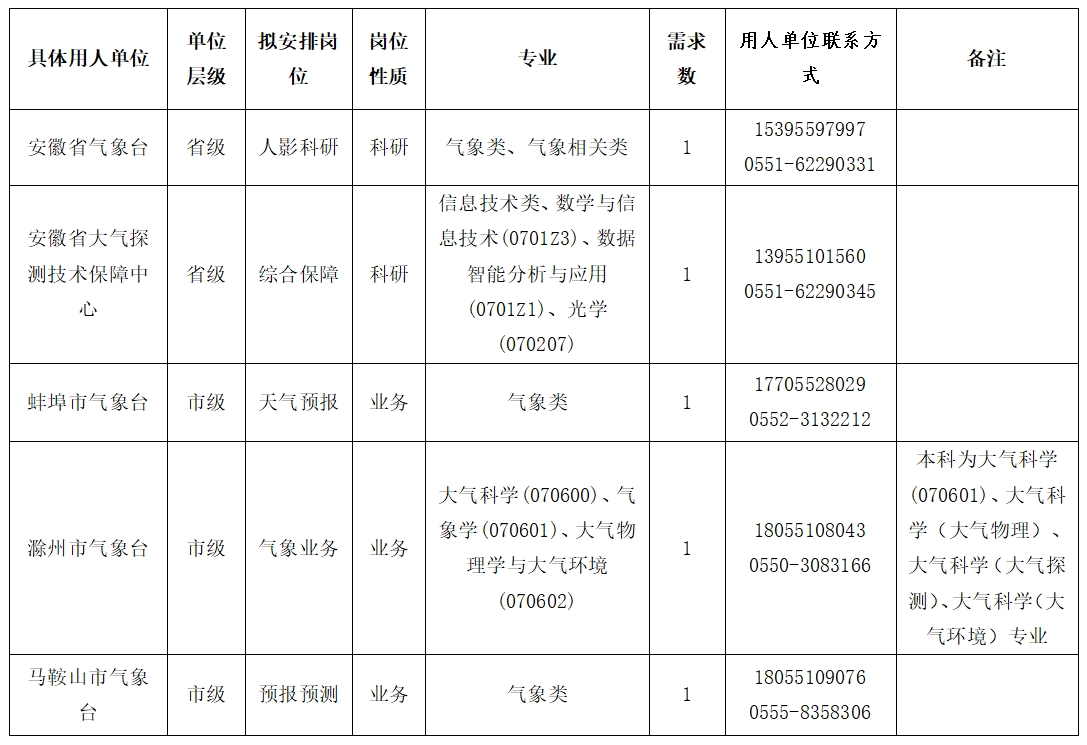 此批次安徽省气象部门事业单位招聘工作面向博士岗位。