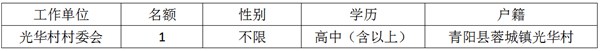 2025年池州青阳县蓉城镇光华村公开招聘临时工作人员公告