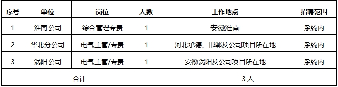 根据工作需要,现招聘安徽公司所属单位相关岗位。具体事项公告如下: