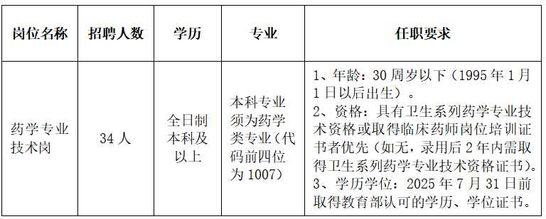 2、资格:具有卫生系列药学专业技术资格或取得临床药师岗位培训证书者优先(如无,录用后2年内需取得卫生系列药学专业技术资格证书)。