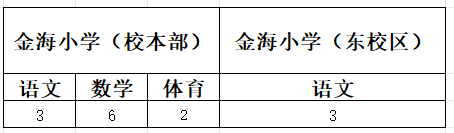 金海小学校本部:小学语文3人、数学6人,体育2人。