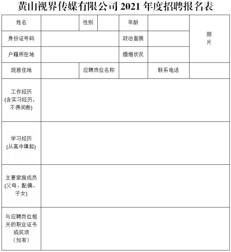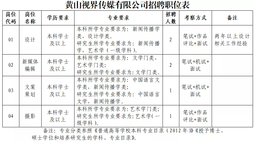 黄山视界传媒有限公司是黄山日报社直属国有文化企业。现因业务发展需要,面向社会公开招聘6名工作人员。