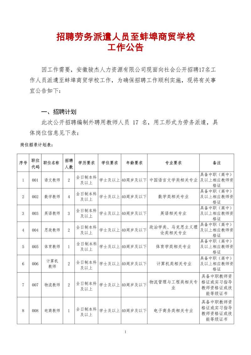 / 2021年蚌埠商贸学校招聘劳务派遣人员工作公告