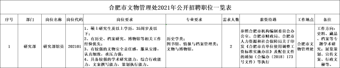 因工作需要,合肥市文物管理处面向社会公开招聘2名工作人员。具体如下: