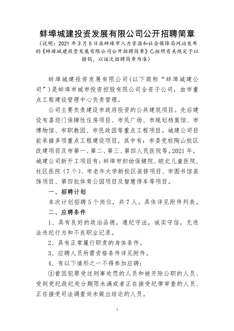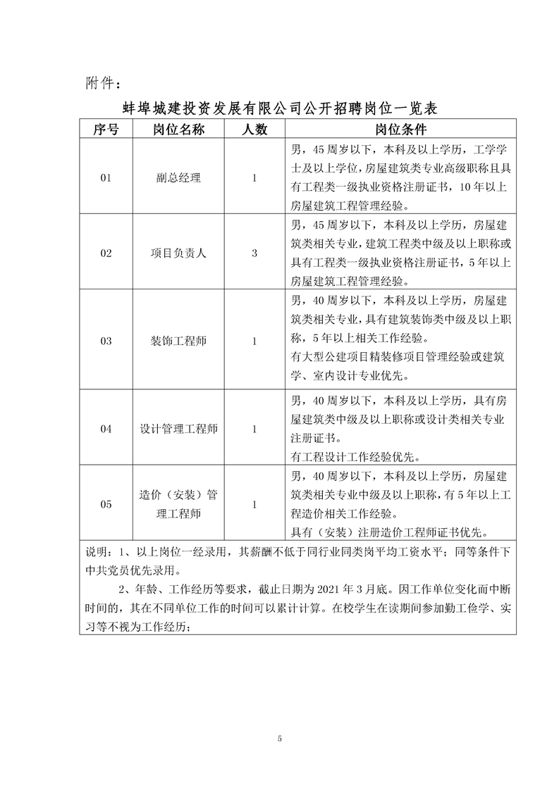 2021年蚌埠城建投资发展有限公司公开招聘简章
