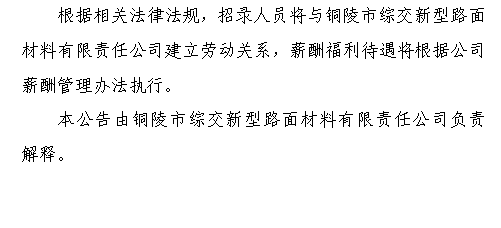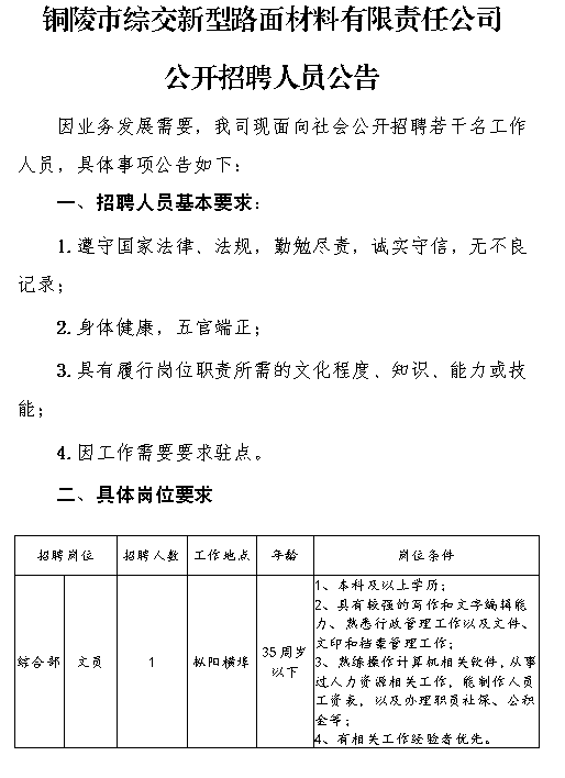 2021年铜陵市综交新型路面材料有限责任公司公开招聘人员公告