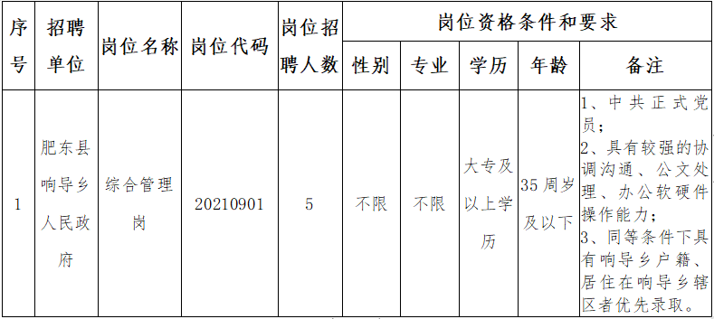 (七)具备省公务员主管部门和《肥东县农村村级工作人员管理办法(试行)》规定的拟任职位所要求的其他资格条件;