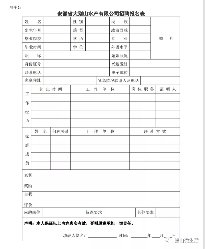 仅接受现场报名(双休日不接受报名),报名时需提交本人学历证书、身份证、户口本原件及复印件各一份,与报考岗位相关的职称(职业资格)证书、获奖(表彰)证书原件及复印件各一份,本人近期同底一寸证件照片3张。报名时填写《安徽省大别山水产有限公司招聘报名表》(附件2)一份,应聘者报名信息必须与本人实际情况一致,凡弄虚作假者,一经查实,取消面试、聘用资格。