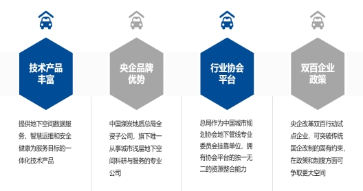 母公司中煤地下空间公司公司已经发展近20年,整合上级单位中国煤炭地质总局及二十余家兄弟单位品牌、技术优势,通过中国规划协会地下管线专业委员会上下游全产业链的资源整合,积累了丰富的项目实施、管理经验,行业经验丰富,有完备的组织架构及人员储备。安徽公司依托上级单位的品牌优势、技术沉淀与项目经验积累,突破传统国企改制固有约束,引入战略投资者,在政策和制度方面可争取更大空间。