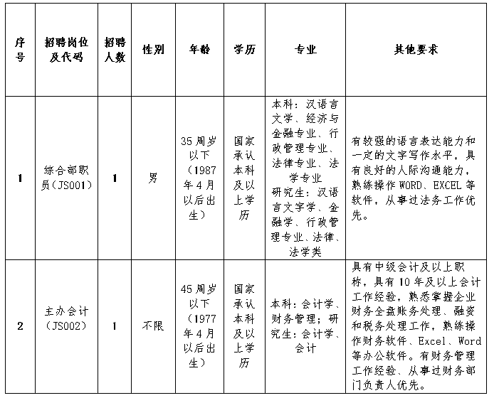 二、招聘岗位及要求