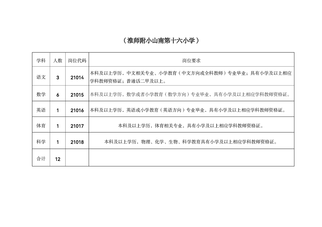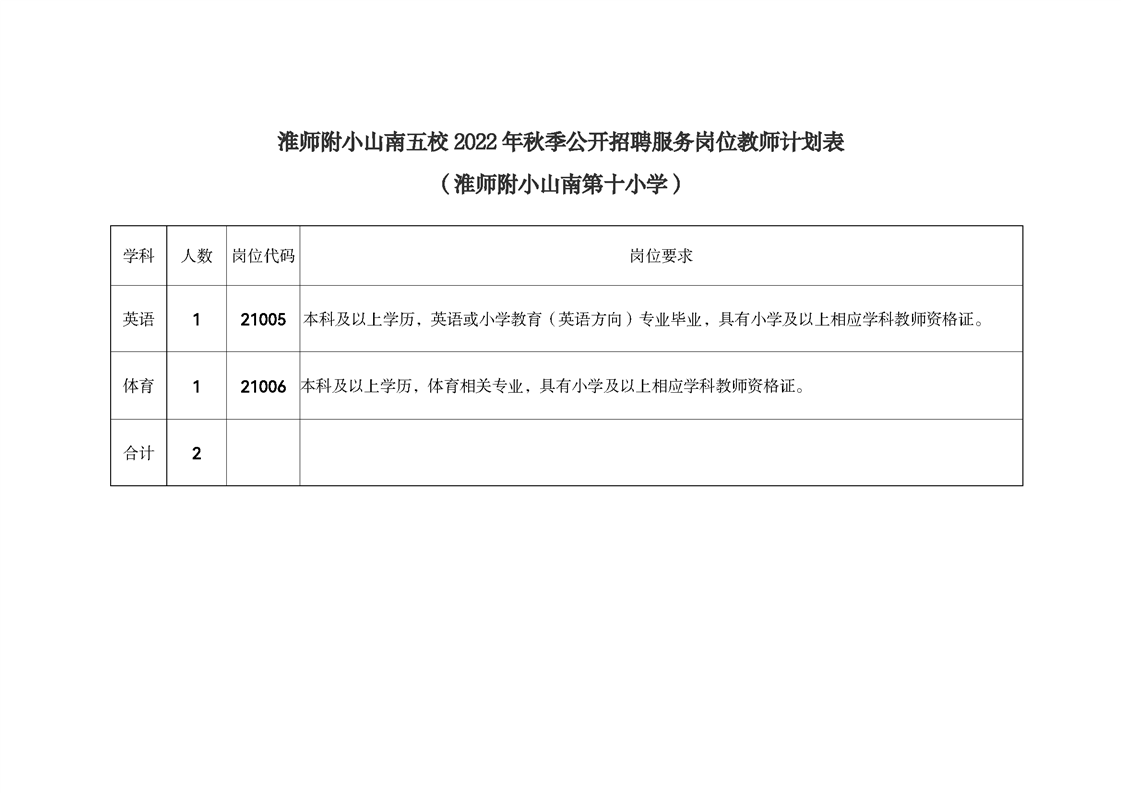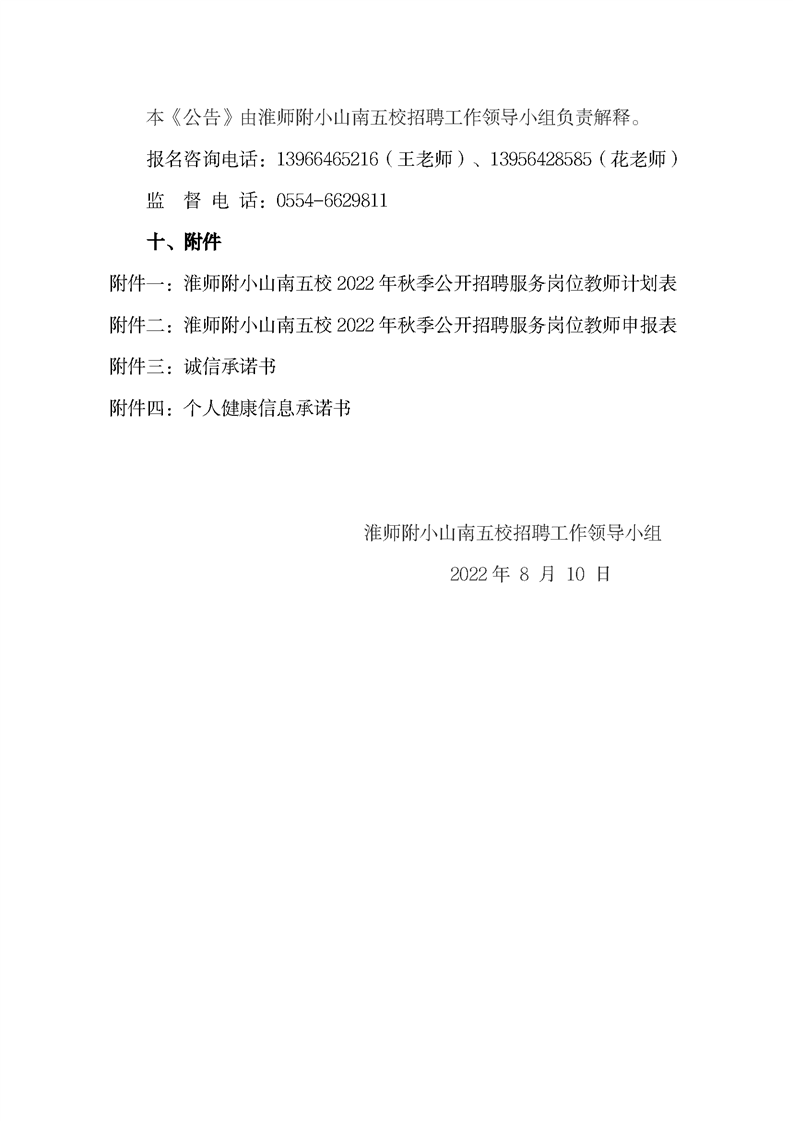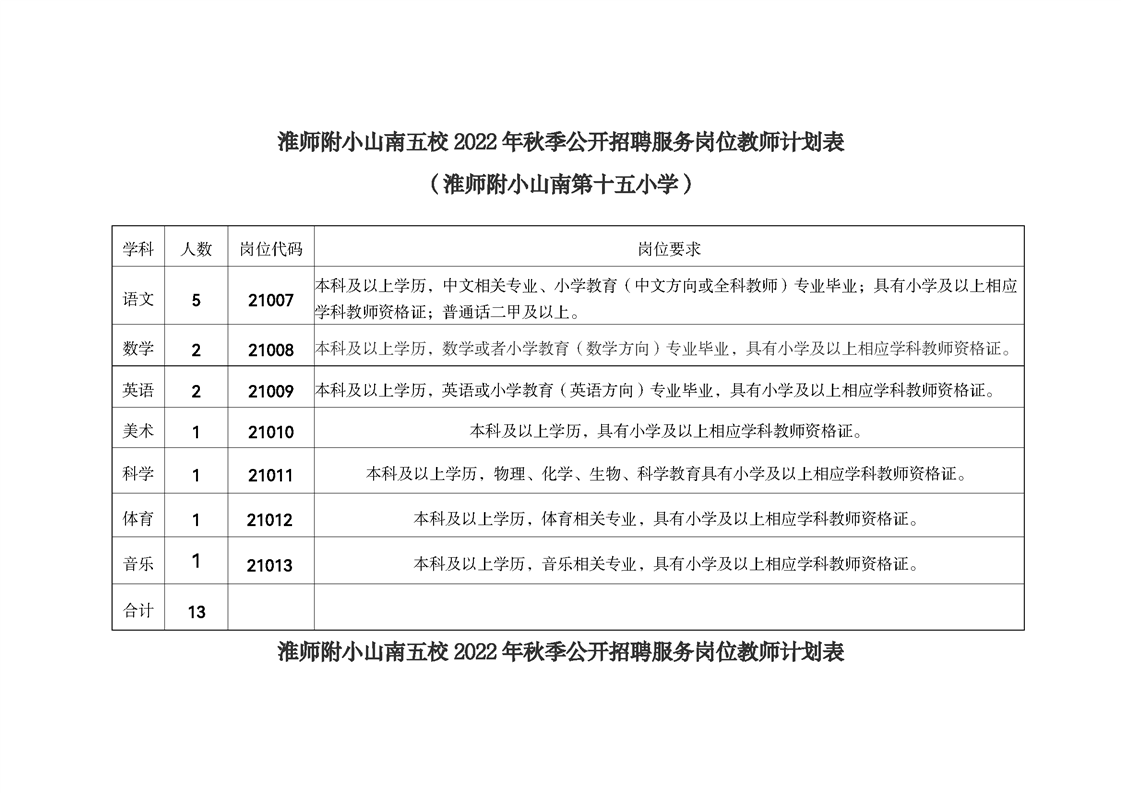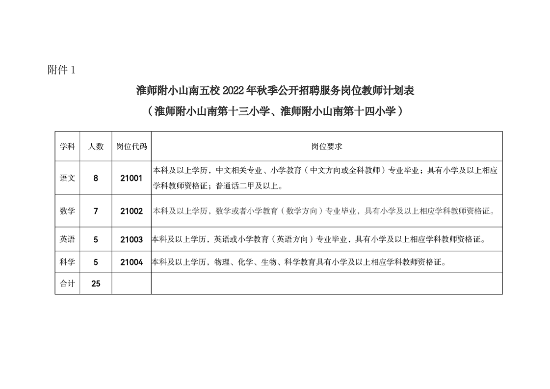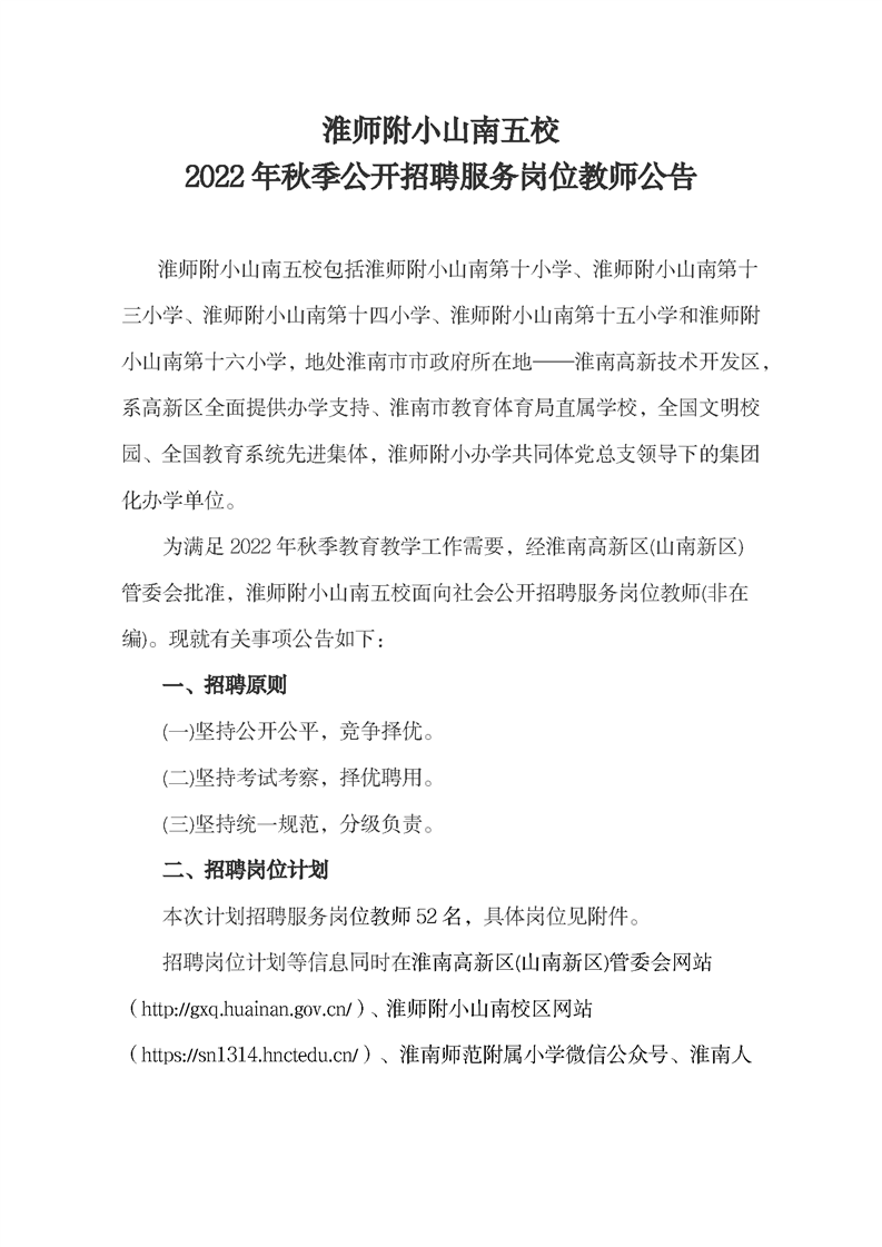为满足2022年秋季教育教学工作需要,经淮南高新区(山南新区)管委会批准,淮师附小山南五校面向社会公开招聘服务岗位教师(非在编)。现就有关事项公告如下: