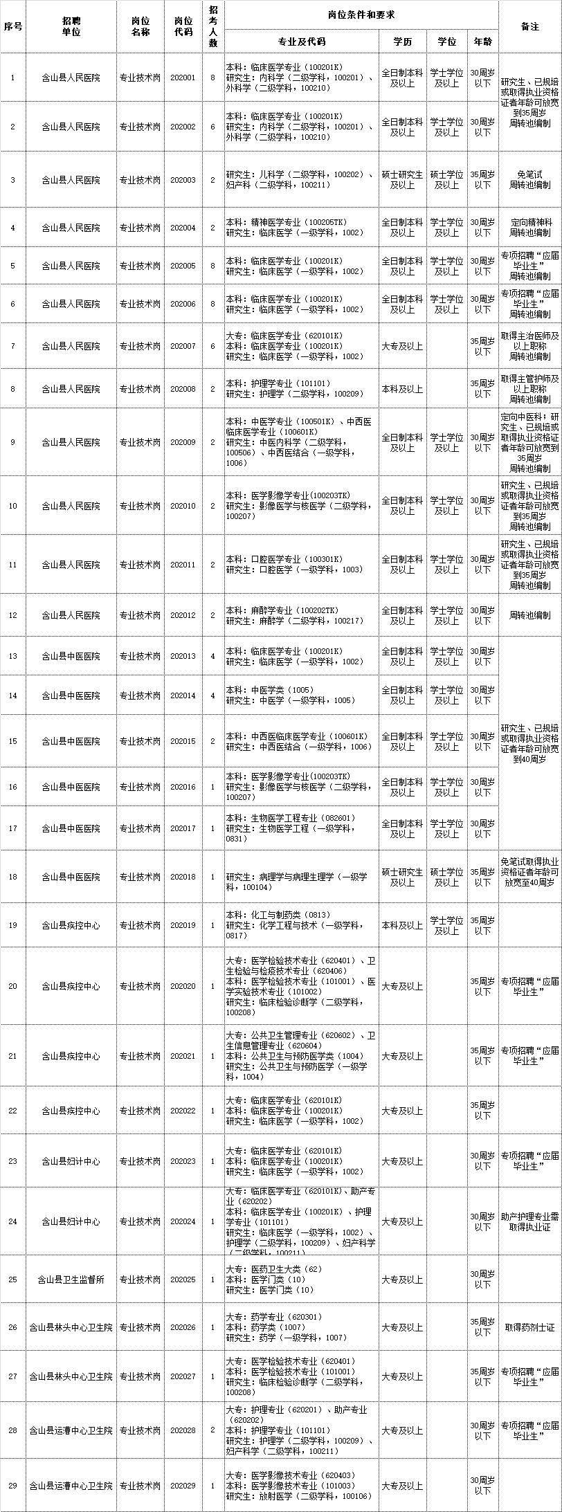 附件:2020年含山县医疗卫生事业单位公开招聘工作人员职位表