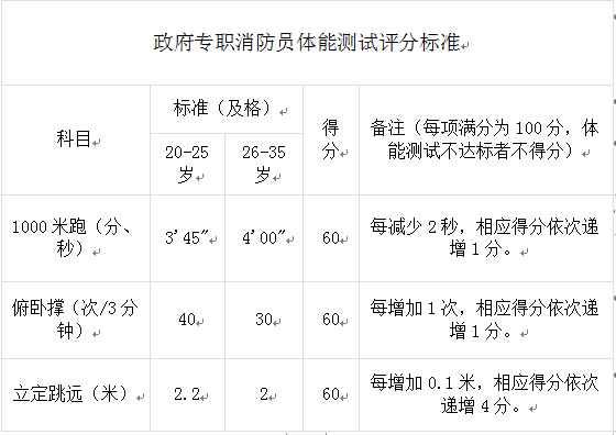 (3)测试项目:政府专职消防队员1000米跑、俯卧撑、立定跳远。